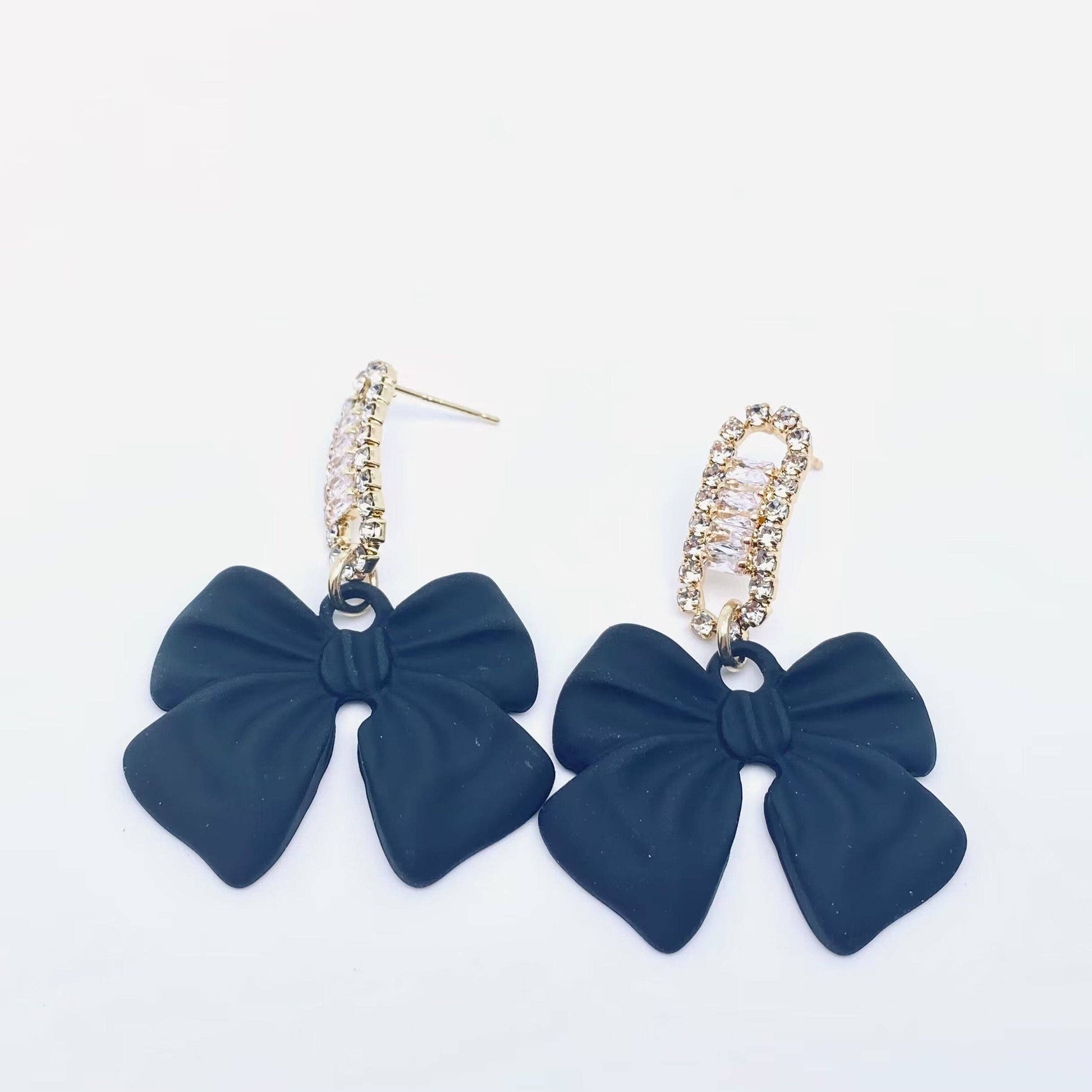 Black Bow Rhinestone Earrings