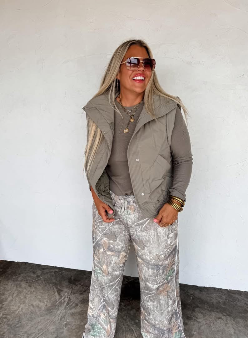 This lightweight VEST features a structured silhouette with subtle quilting and a mock neckline for a modern edge. Designed with wide armholes, it layers effortlessly over any outfit without adding bulk. Includes a zipper closure and snap buttons for added functionality while maintaining its clean, minimal look. A closet staple for transitional weather and easy layering. $59