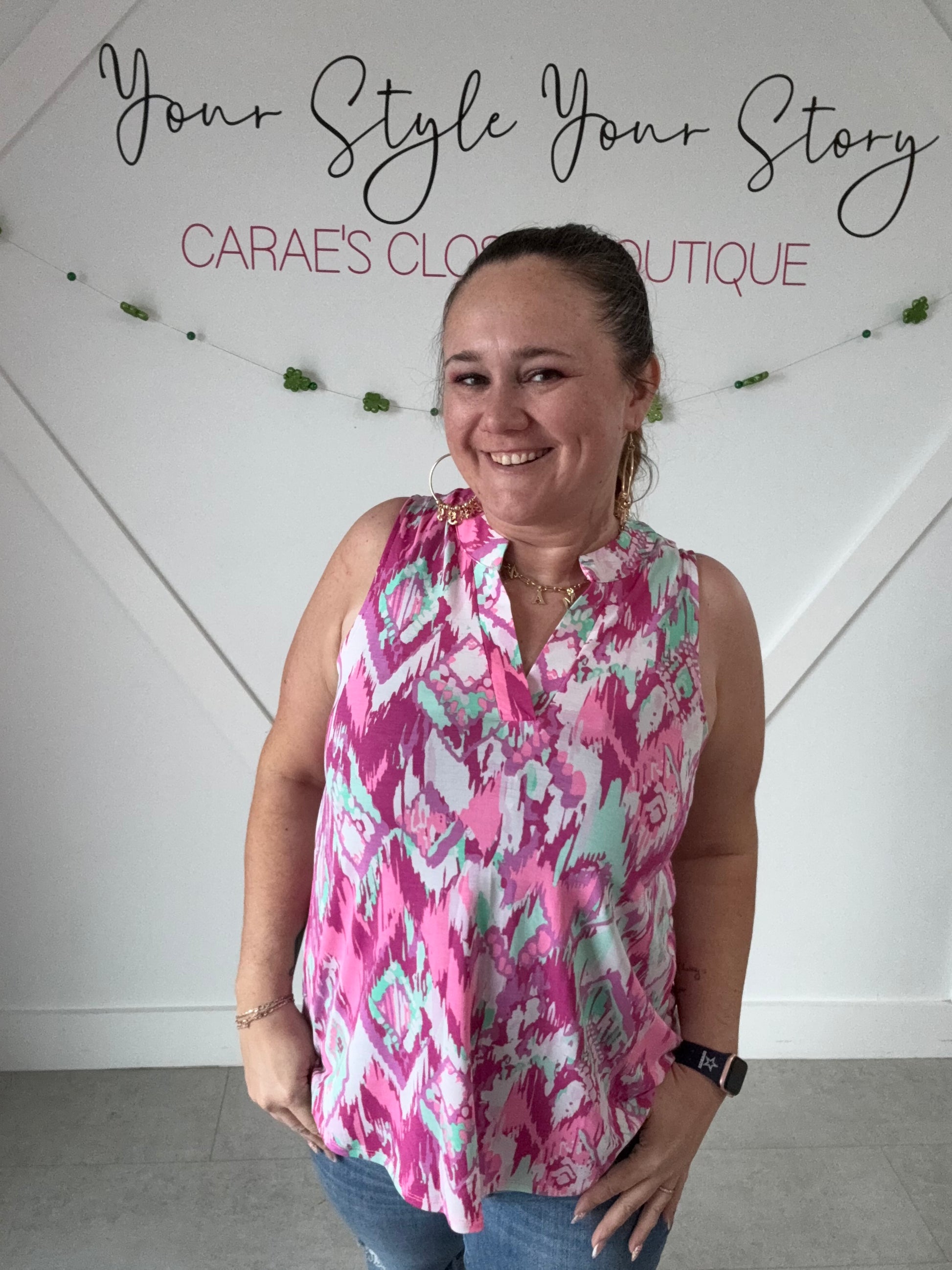 Another amazing resort where top from Dear Scarlet. Crumble it up throw it in your suitcase and hang it up and have that wrinkle free. Look effortlessly with some amazing fun colors in it. It’ll be a top that you’ll be running for every time. And we love the fact that we can sign down in our Dear Scarlet tops.