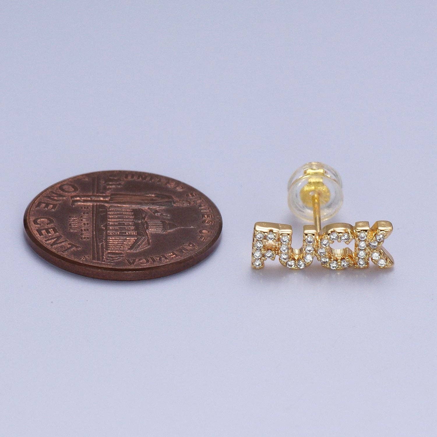 Dainty 16K Gold Filled "FUCK" CZ Stud Earrings