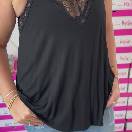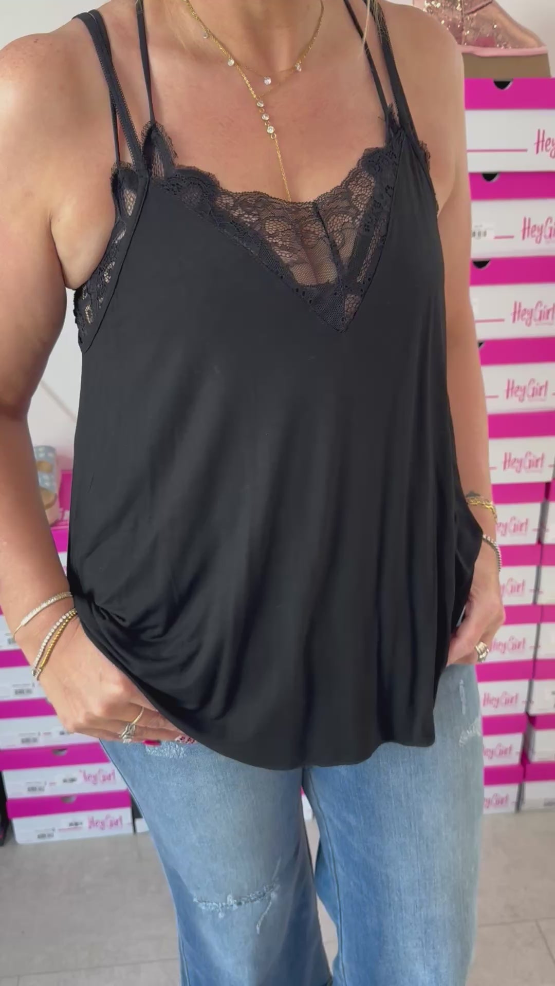 POL Lace Detail Camisole Tank – Black, Grey & White