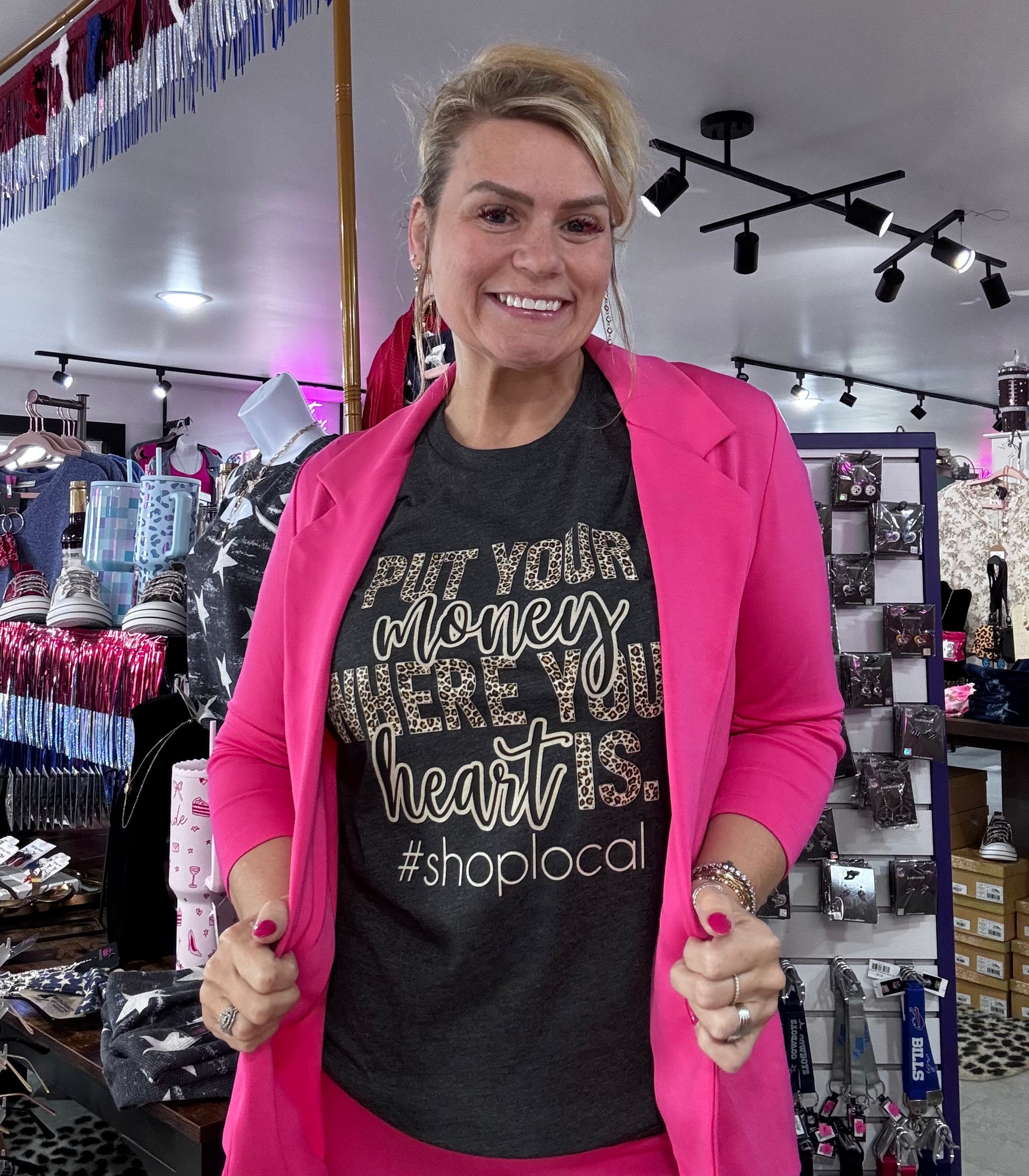 There’s something special about shopping small—it’s personal, it’s local, and it truly makes a difference. Our “Shop Local” tee is more than just a shirt; it’s a statement. A reminder that every purchase made with a small business helps keep dreams alive, families supported, and communities thriving.