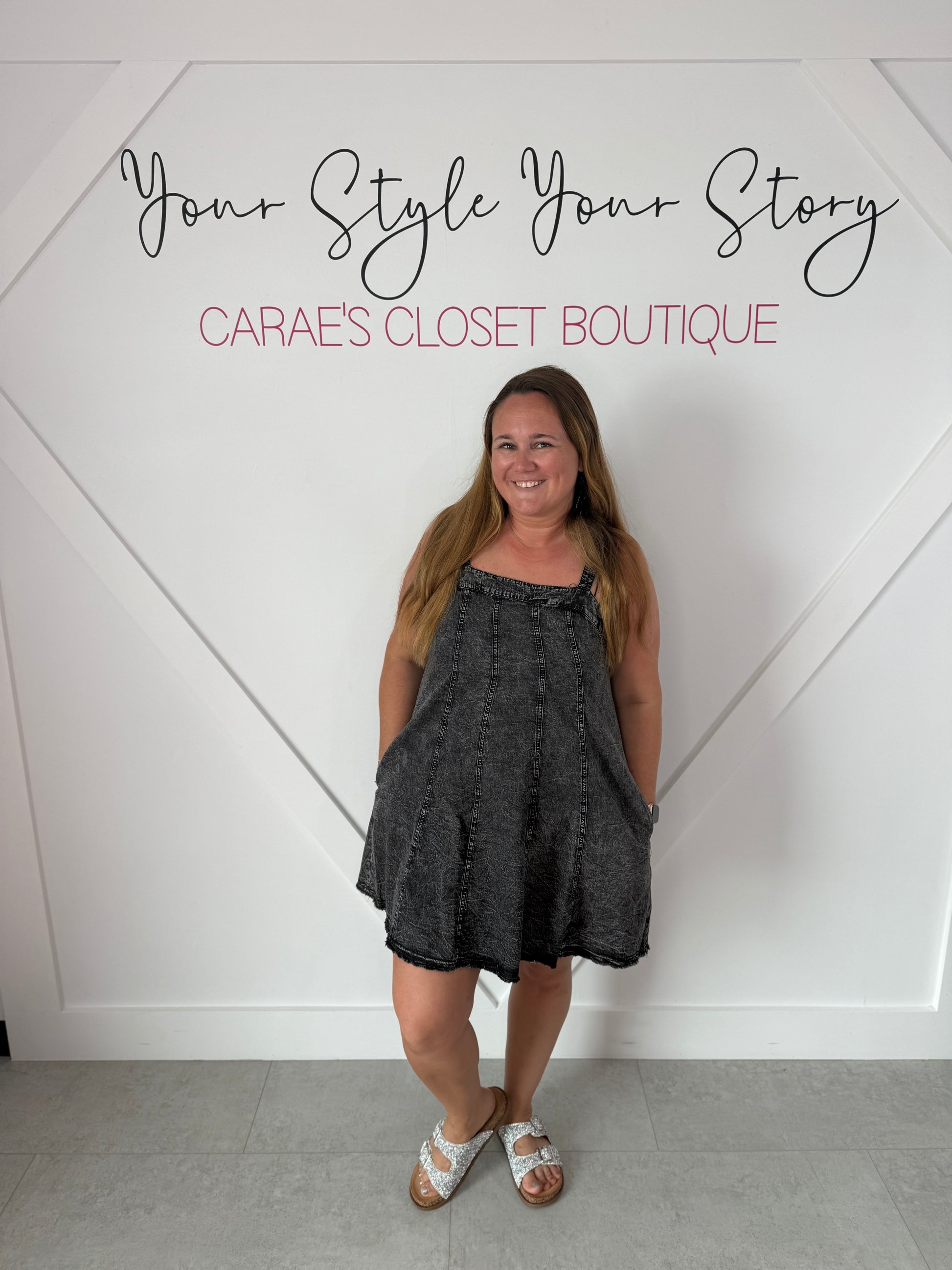 A sexy and sweet summer mini dress featuring a straight neckline, adjustable bow straps, raw edge hem, and lines that accentuate all the best parts. And pockets of course!