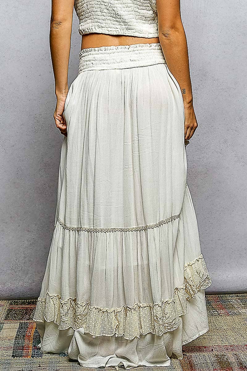 POL Smocked Embroidered Long Skirt