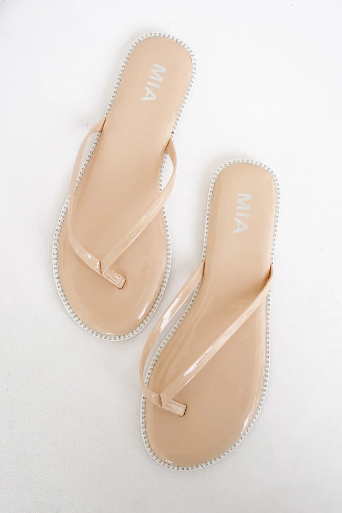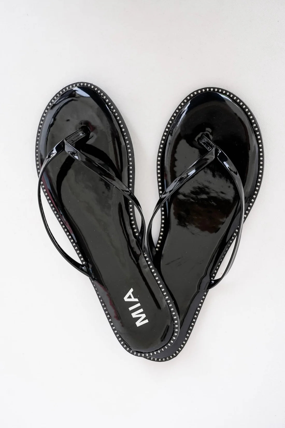 Step into comfort and sparkle with these MIA flip-flops featuring a crystal-paved design. Whether you're heading to the pool or strolling around town, these flip-flops will add a touch of glam to your casual look. Available in multiple colors to match your summer wardrobe!